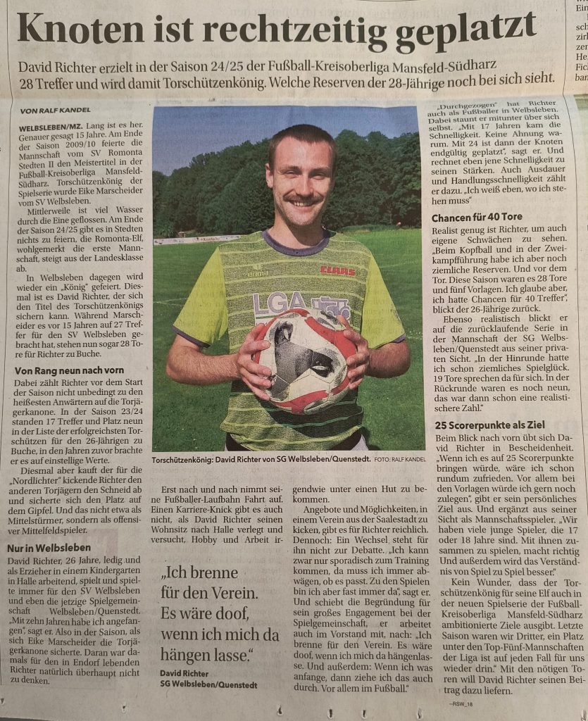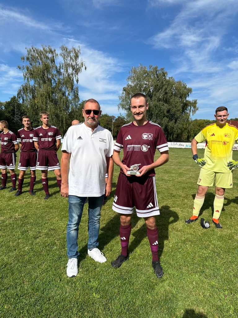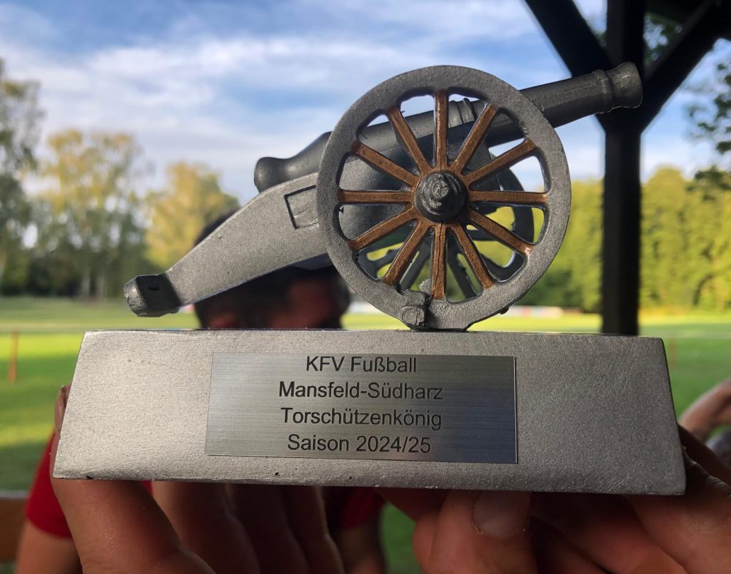 Dies wünscht man auch den letztjährigen Torschützenkönig der Kreisoberliga Mansfeld Südharz. Vor dem Spiel wurde er für seine 28 geschossenen Tore in der letzten Saison von Staffelleiter Michael Walther mit der Torjägerkanone ausgezeichnet. Auch von dieser Stelle aus nochmals herzlichen Glückwunsch.