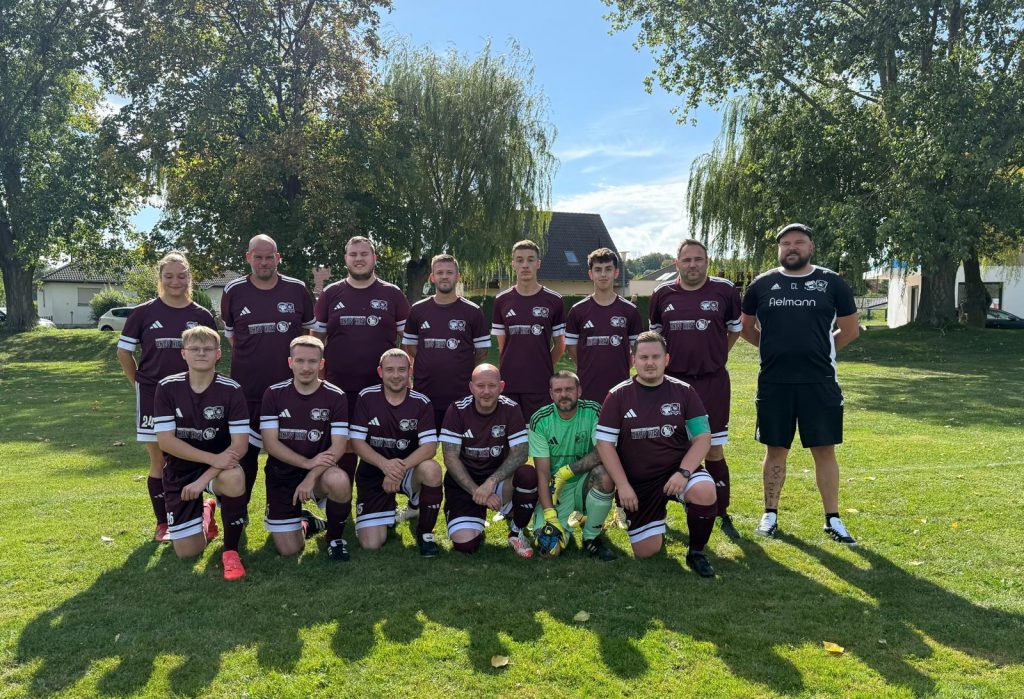 Vor dem Spiel der Zweiten gegen die neugegründeten SG aus Walbeck und Sandersleben gab es dann wie schon bei der Ersten am vergangenem Spieltag einen Fototermin. Auch unsere Zweite zeigt sich ab jetzt in bordaux rot und dem Logo des Schornsteinfegermeisters Andy Hirt. Auch hier an dieser Stelle ein großes Dankeschön an den Sponsor.