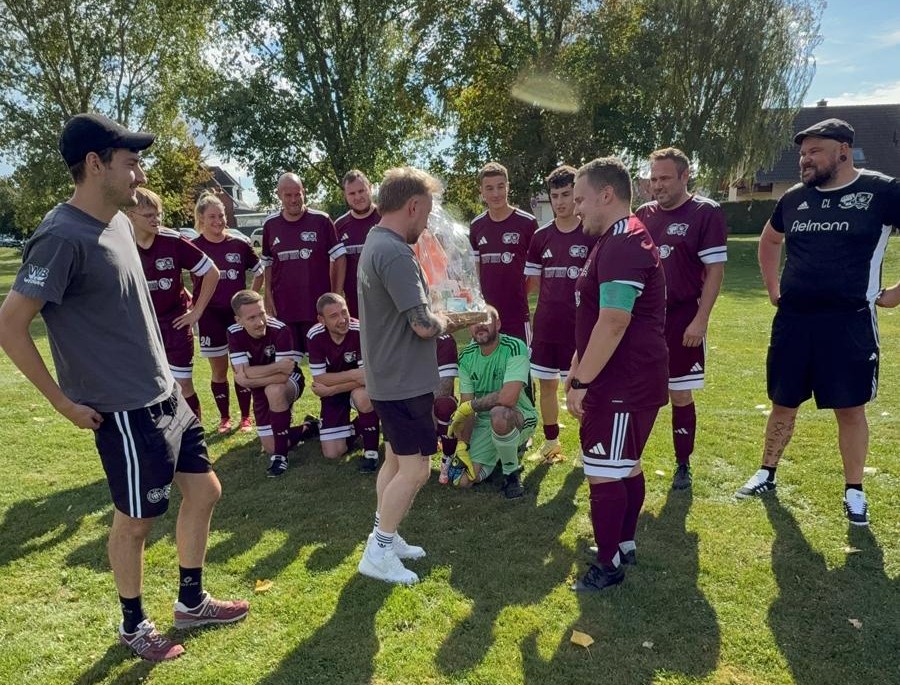 Im Anschluss gab es dann für den Kapitän und frisch gebackenen Vater Martin Göppert ein kleines Geschenk von den beiden Mannschaften mit den besten Wünschen für die Zukunft.
